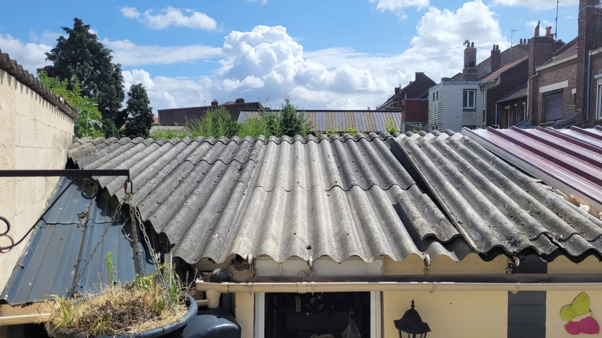 Chantier sur LommeA la demande d'un habitant de Lomme, nous sommes intervenus pour la rénovation d'un couverture en fibrociment dans un triste état. Tôles bac acier environ 40m² et pose de gouttière de 10m en 4 jours Durée du chantier 4 jours Toiture