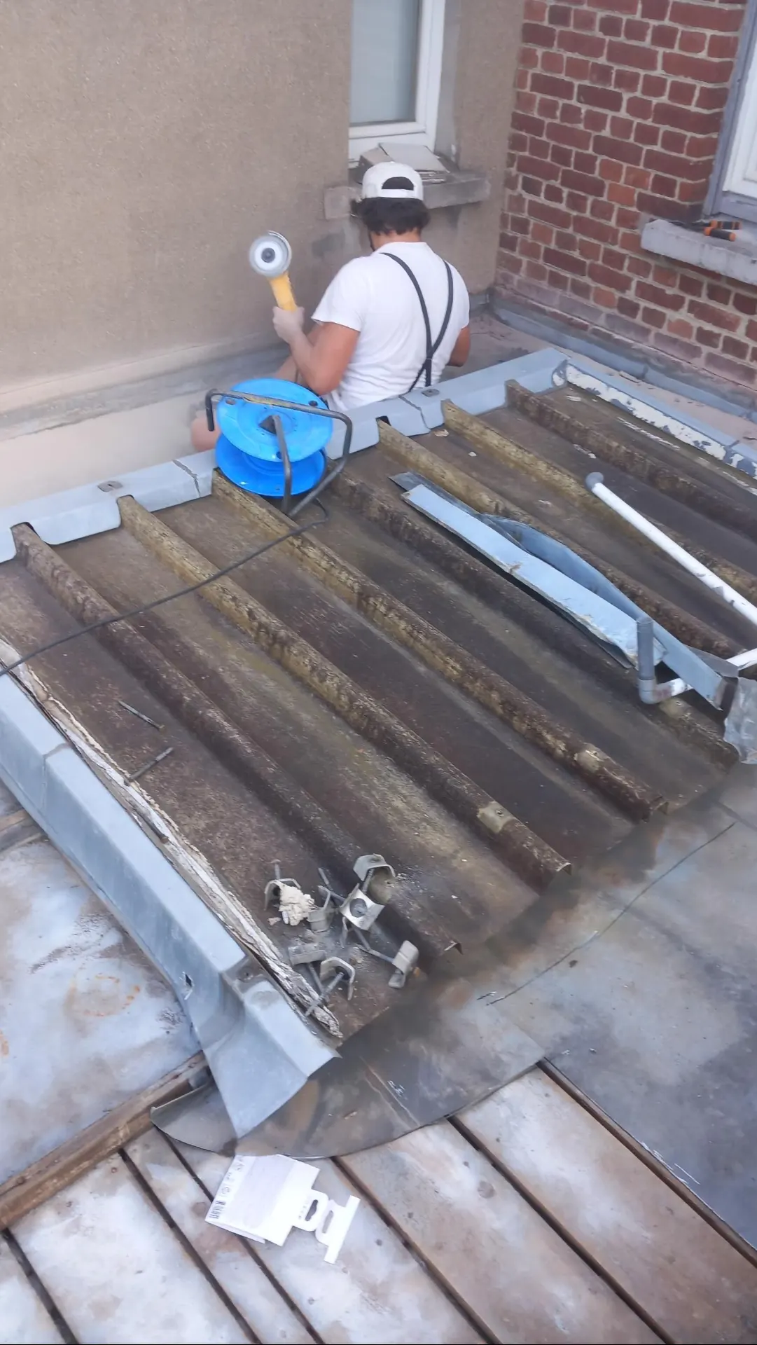 Chantier sur Templemars Afin de laisser entrer plus de lumière, reprise totale d'une plateforme en zinc et pose de tôles polycarbonate. Durée du chantier : 3 jours. Zinguerie