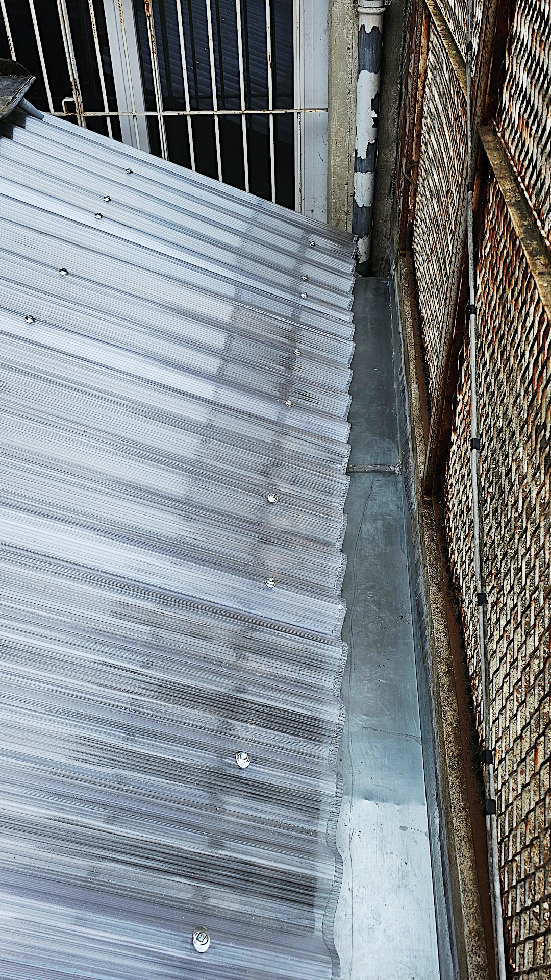 Travaux de remplacement de chéneau et de tôles ondulé polycarbonate suite à des infiltration d'eau. Durée 3 jours.