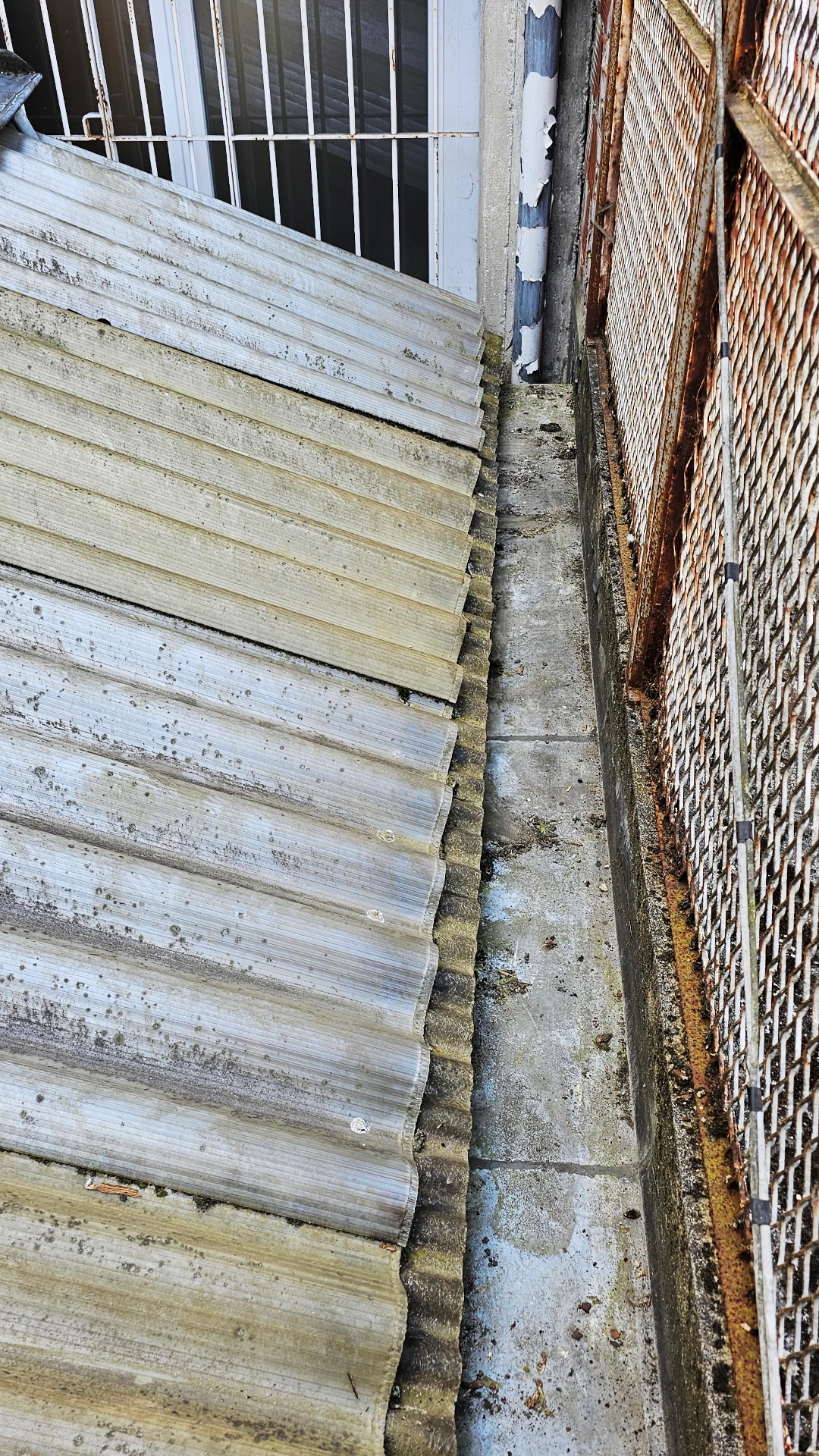 En juillet 2025, travaux de remplacement de chéneau et de tôles ondulé polycarbonate suite à des infiltration d'eau.